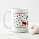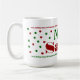 ¡Esta taza fue hecha especialmente para Santa! Gran recuerdo para las tradiciones del navidad. ¡Dé a Santa a la taza especial para su leche con las galletas! Colores festivos en rojo, verde y blanco.