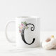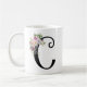 Taza de café hermosa con arte original del monograma. Letra negra C, adorno floral de la acuarela (simplemente por la tinta)