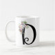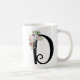 Taza de café hermosa con arte original del monograma. Letra negra D, adorno floral de la acuarela (simplemente por la tinta)