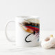 El Gordon, una mosca de color salmón vestida llena hermosa de la pesca imprimió en una taza blanca llana
