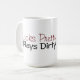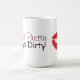 Una taza para un chica travieso. Las características del diseño la cita, "bonito de las miradas, juegan sucio." con un beso rojo del lápiz labial.