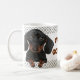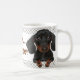 ¡Una taza de consumición temática del Dachshund, ideales para el dueño del Dachshund o para la gente que apenas adora Dachshunds! Las características del diseño de las tazas dos pintaron las imágenes de los perritos lindos del Dachshund con el café del texto "Mmm…!".