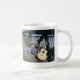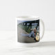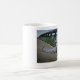Taza blanca con la foto de Ryan que se sienta en un puente