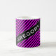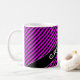 Características del este diseño de la taza un modelo simple de líneas/de rayas de negras y fucsias de alternancia. También ofrece un nombre de encargo en texto coloreado blanco dentro de un área coloreada oscuridad, con ambos en ángulo. [~Z0000051]