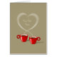 Tarjeta de saludo con dos tazas rojas de café, el vapor formando un corazón. Personalizable completo, puede personalizarlo con su propio texto. Adecuado para todas las edades.