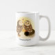 Este tazón de café muestra una encantadora pareja de búhos dibujados a mano, donde el búho se agarra para besar a su lechuza chica. Los búhos se dibujan con lápices de carbón. La escena es muy romántica, y podría ser un pequeño regalo perfecto para una pareja en el El día de San Valentín que viene. Puedes personalizar esta taza con tus nombres. Disfruta de tus cafés.