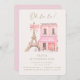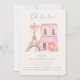 Traiga el encanto parisino a la celebración de su pequeña familia con esta elegante invitación de cumpleaños que presenta un diseño de cafetería pintado a mano y la Torre Eiffel en tonos pastel. Perfecto para una temática fiesta de inspiración francesa, esta invitación marca la pauta para una moda y memorable reunión de cumpleaños.