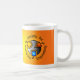 La sociedad para el logotipo de impresión molecular en una taza con un fondo anaranjado de la pendiente