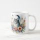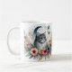 Café Retrato de gato gris bonito con taza de flores