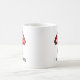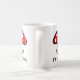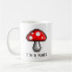 Una taza con un diseño rojo de la seta del pixel en cada lado. El texto me lee "es los hongos" puede ser cambiado sin embargo.
