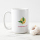 Goce de un chocolate caliente en esta taza deliciosa por Madsahara. Dos amigos felices gozan del cielo nocturno del invierno. En el otro lado, una imagen de la baya del acebo y la firma del artista. ¡Buenas fiestas!
