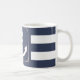 Taza blanca clásica del navegante Aweigh de las anclas en raya náutica de la marina de guerra.