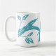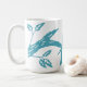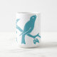Pájaros azules gráficos en una taza blanca