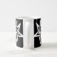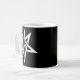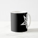 Goce de su bebida de la opción con el blanco doble clásico en la taza blanca adornada Sigil negra de Antón Szandor LaVey.