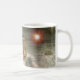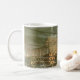 Taza cibernética de la guerra con los tanques del código binario que luchan en un paisaje digital.