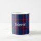 Gran taza escocesa de mirada del clan hecha en el modelo verde, azul, rojo y negro clásico de la tela escocesa de tartán de Glenn del clan. El texto blanco en blanco lee a Glenn y se puede personalizar para leer lo que usted quiere.