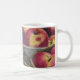 Café Taza con un Chickadee en una cesta de manzanas