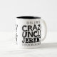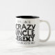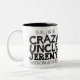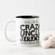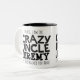 Taza negra del lema del texto del tío loco. Lee oh sí, soy el tío loco Jeremy que cada uno le advirtió alrededor. O personalice con su propio nombre. Diseño del texto de Sarah Trett para www.mylittleeden.com en zazzle.