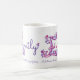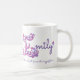 Dé la taza exhausta del nombre y del significado de la letra E. El capital bonito E del corazón y de la flor doodled el diseño tipográfico que ofrecía corazones y las flores y las palabras perfección industriosa, vibrante, para siempre de esfuerzo de Emily en rosa y púrpura. Arte y diseño únicos del © de Sarah Trett. www.sarahtrett.com para www.mylittleeden.com en zazzle