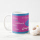 Esta taza ofrece a la Elizabeth conocida en 13 idiomas incluyendo: Inglés, español, francés, servio, polaco, checo, escocés, hebreo, alemán, irlandés, italiano, ruso, y polaco.