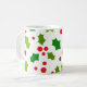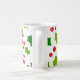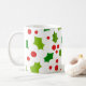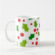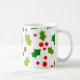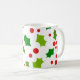 Taza de café o té con diseño de bayas y hojas de acebo de Navidad en verde y rojo.