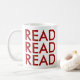 La taza leer leer leer es una taza para amantes de los libros para fomentar la lectura. Es una taza divertida perfecta para un ratón de biblioteca, un bibliotecario o cualquier persona que ame la literatura, como un profesor de inglés. Es el regalo perfecto de agradecimiento para su maestro de inglés, o simplemente un regalo para su hijo para animarlo a leer más. Está escrito en un tipo moderno y tiene un toque de humor.