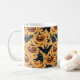 Esta es una taza de taza para Halloween. Presenta un diseño elegante que combina naranja y negro. Que tengan una feliz Halloween.