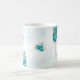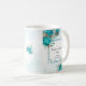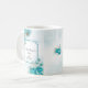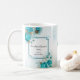Flores turquesa en taza de boda, personaliza con tu nombre o mensaje.