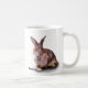 Una taza con el nombre de BunnyLuv y logotipo en un lado y en el otro una imagen del Petra, que es casi 11 años y amores que cavan en el heno y snuggling con sus amigos del conejo.