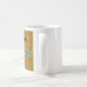 Taza de café con una pintura de naturaleza muerta de una caballa y un cuchillo en una tabla de cortar de madera. Grandes regalos para cocineros y amantes del pescado. Obra de arte: Pastel al óleo sobre panel. Derechos de autor Dominic A. White. Todos los derechos reservados.