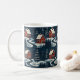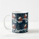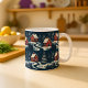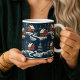 Esta llamativa taza de café presenta un patrón repetitivo audaz y sin costuras inspirado en el arte popular tradicional escandinavo. La ilustración representa acogedoras cabañas rojas y árboles de hoja perenne estilizados contra un fondo oscuro y nevado. El diseño de alto contraste crea una atmósfera invernal cálida y nostálgica, perfecta para acurrucarse junto al fuego. Esta taza única es un regalo festivo encantador para aquellos que aprecian el diseño nórdico, los patrones gráficos o la decoración del hogar distintiva durante la temporada invernal.
