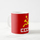 Taza de café con el texto, martillo y hoz y estrella del cccp