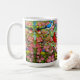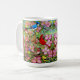 Tenga su café o té de la mañana en esta taza de cerámica abundante clasificada, impresa vivo con la pintura original de la acuarela en estilo del realismo de los pájaros salvajes del patio trasero colorido en un árbol de Dogwood rosado por el artista Carolyn McFann del estudio de ronroneo de dos gatos. ¡Una gran idea para un regalo para todos que aman fauna y la naturaleza!