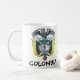 Una taza brillante con el escudo de armas nacional alrededor de él. Es un gran presente para la gente que ama Colombia.