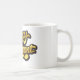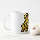 Esta alegre taza de cerámica blanca presenta letras amarillas soleadas y audaces delineadas en negro que dicen orgullosamente "Feliz Jubilación". El diseño de alto contraste resalta maravillosamente contra el fondo blanco limpio, creando una apariencia brillante y celebratoria que se siente alegre y edificante.