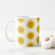 Esta taza tiene una bonita impresión de girasoles.