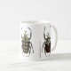 Tres escarabajos de Goliat que sorprenden en una taza