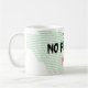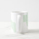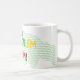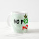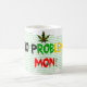 Una taza que contiene el mapa de Jamaica con las palabras ningún problema lunes escrito en él y una hoja jamaicana de la hierba en el centro de parte delantera superior de la taza