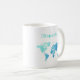 Alimente sus necesidades que vagan con esta taza del Wanderlust en sombras del agua azul en un mapa del mundo.