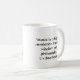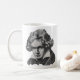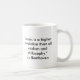 Una taza que ofrece una cita del compositor conocido Ludwig van Beethoven, acompañado por un retrato blanco y negro en el dorso.