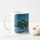 una taza de consumición festiva para la familia entera que ofrece un squaire nevoso de la ciudad el Nochebuena. recuerdo precioso de las vacaciones de invierno con un diseño exclusivo por arte franco del glerum.