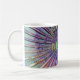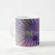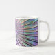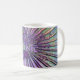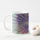 Taza de la explosión de la música de la guitarra eléctrica. Rayos psicodélicos, notas de oro, guitarras púrpuras y música del arco iris,