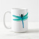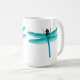 El diseño original de la bella arte de una libélula del verde azul del artista Carolyn McFann del estudio de ronroneo de dos gatos imprimió en una taza de café de la calidad y del personalizable para las fans del insecto de la charca.