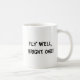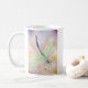 Una libélula pensativa de la acuarela honra el lado de esta taza, junto con la bendición: ¡Mosca bien, la brillante!