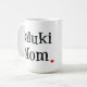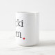 Taza blanca con el texto negro y un pequeño corazón rojo