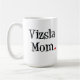 Taza blanca con el texto negro y un pequeño corazón rojo