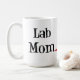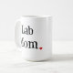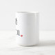 Taza blanca con el texto negro y un pequeño corazón rojo