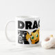 Taza de la roca de los dragones con el dragón negro del texto y del oro