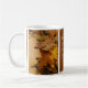 La caída de oro deja en una tolerancia del fondo del canela esta taza. La cita lee, "cuando usted tiene amor en su corazón que usted es rico desmesuradamente!"