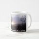 Traiga un tacto natural de la belleza y de la tranquilidad a su taza de la mañana de café o de té con esta taza que ofrece el sol que fija sobre una montaña nevada en Catskills hermoso de Nueva York.